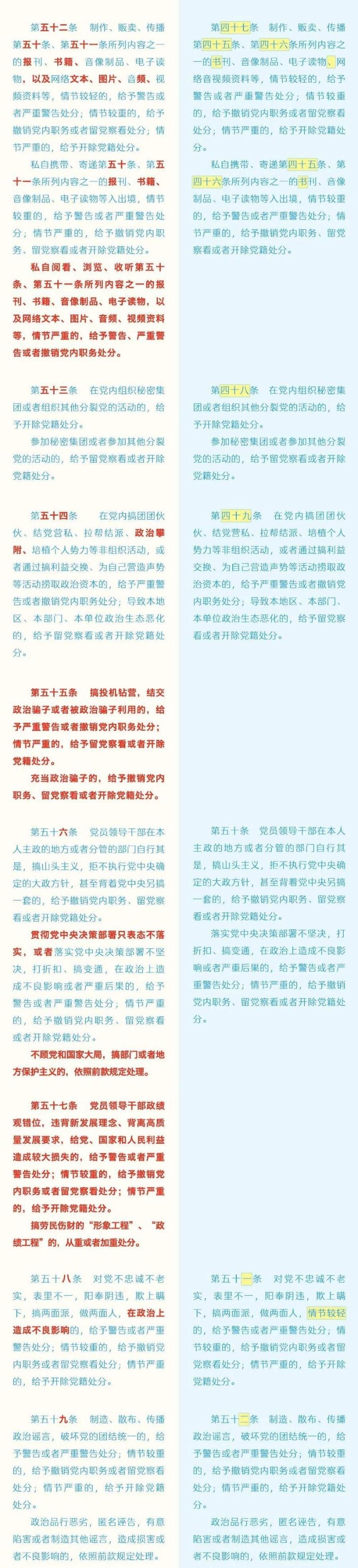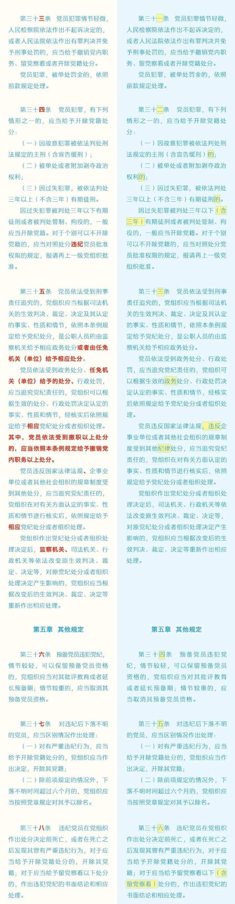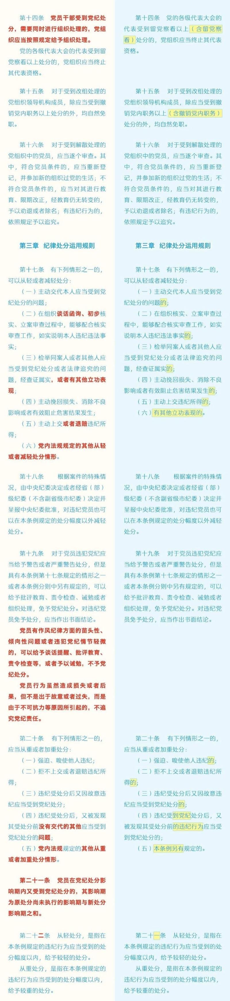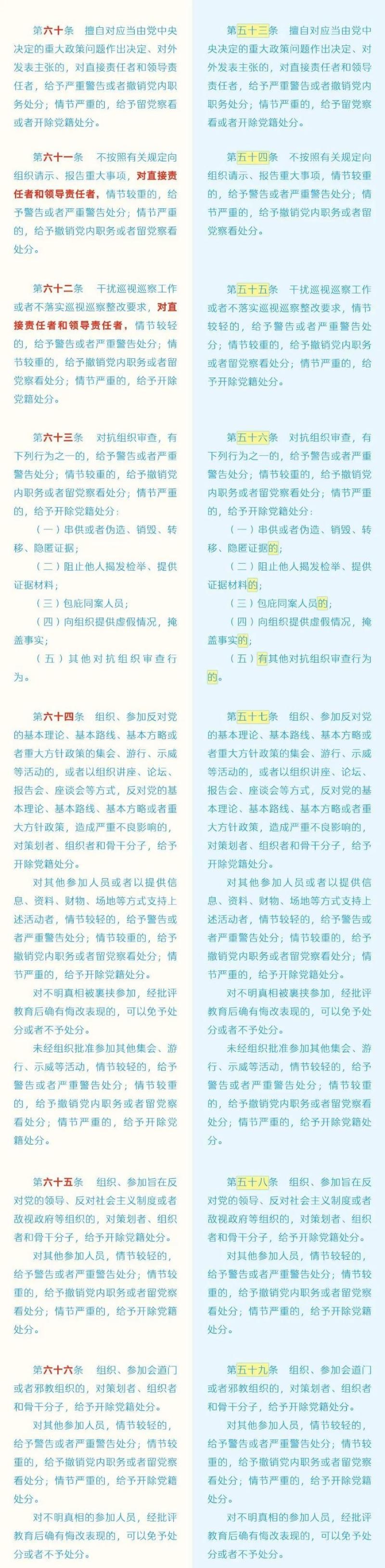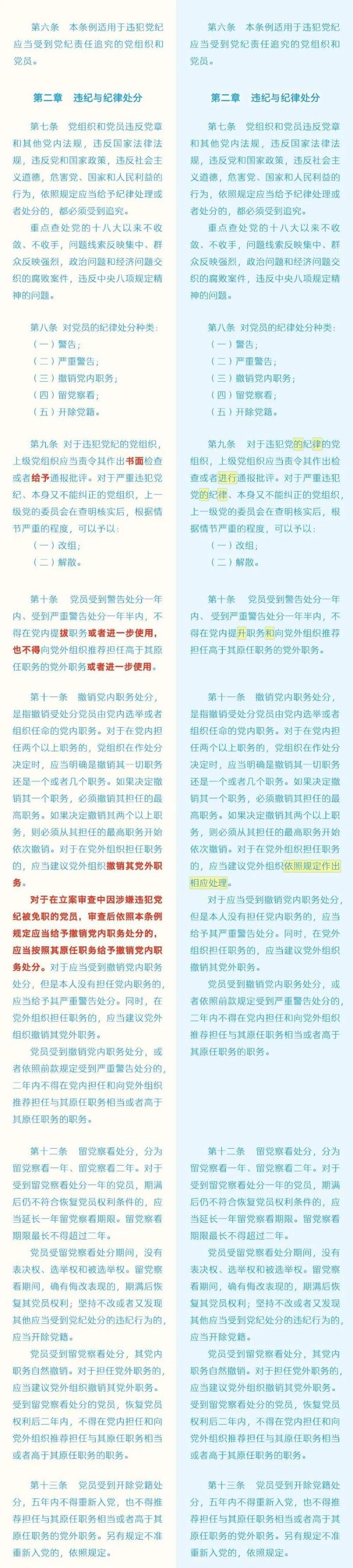《中国共产党纪律处分条例》修订条文对照表
