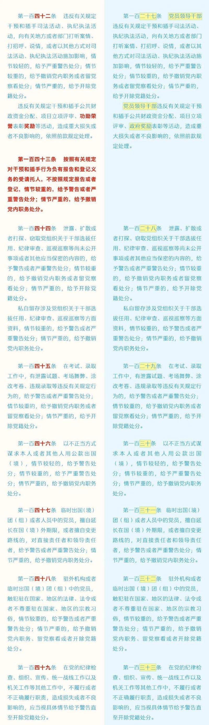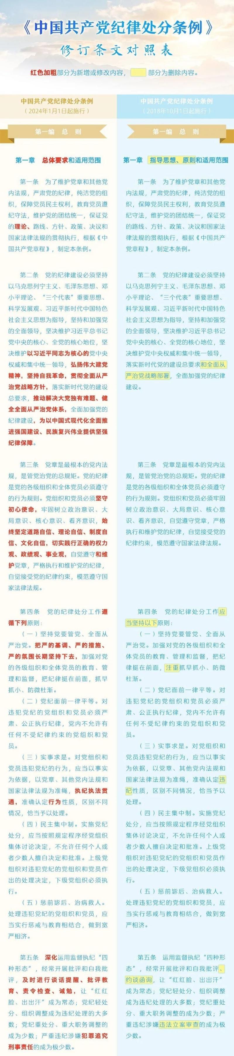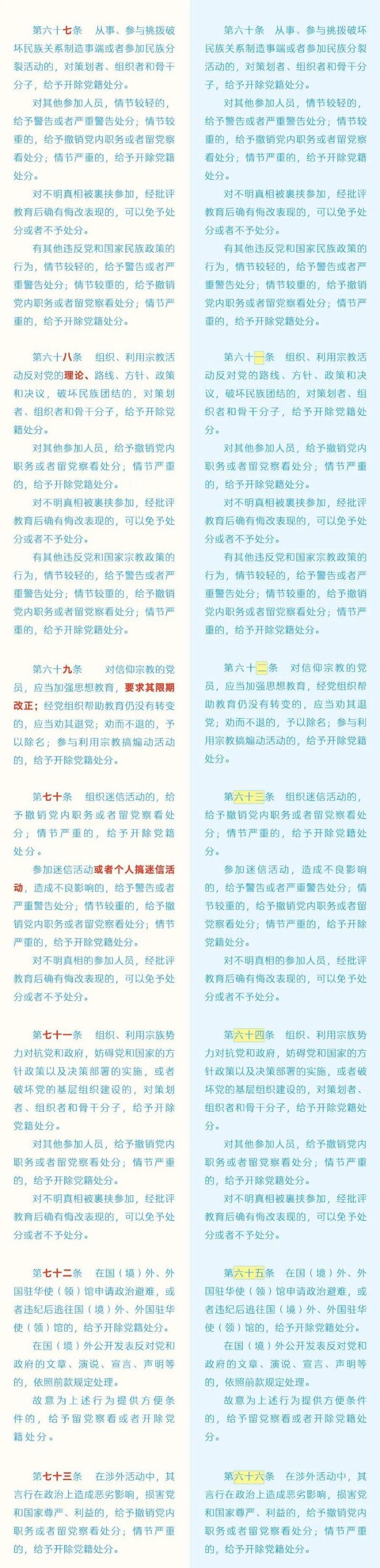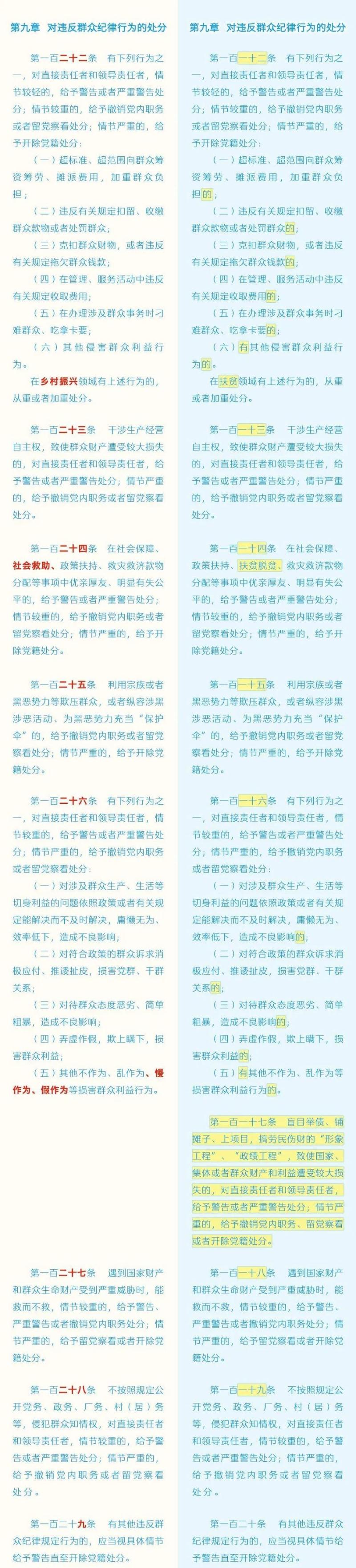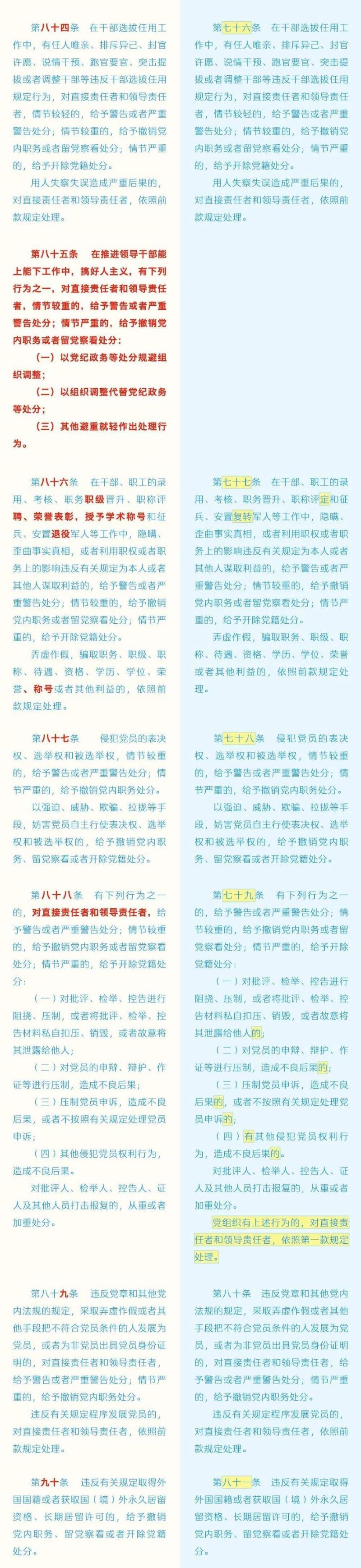 《中国共产党纪律处分条例》修订条文对照表